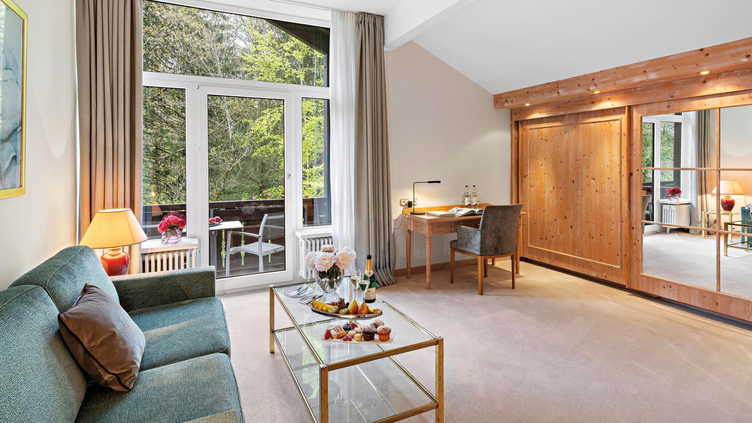 Unsere geräumigen Appartements mit getrenntem Wohn- und Schlafzimmer sind für bis zu 3 Erwachsenen geeignet. Die Schlafzimmer sind ausgestattet mit einem Doppelbett (1,80 x 2,00 m) und die Schlafcouch (1,40 x 1,80 m) im Wohnzimmer lässt sich ausziehen. Die Appartements verfügen über einen vorwiegend großzügigen Balkon bzw. Terrasse, Schreibtisch und Badezimmer mit Dusche. Die Zimmer bieten überwiegend einen Blick in den Garten, teilweise auch einen herrlichen Bergblick.