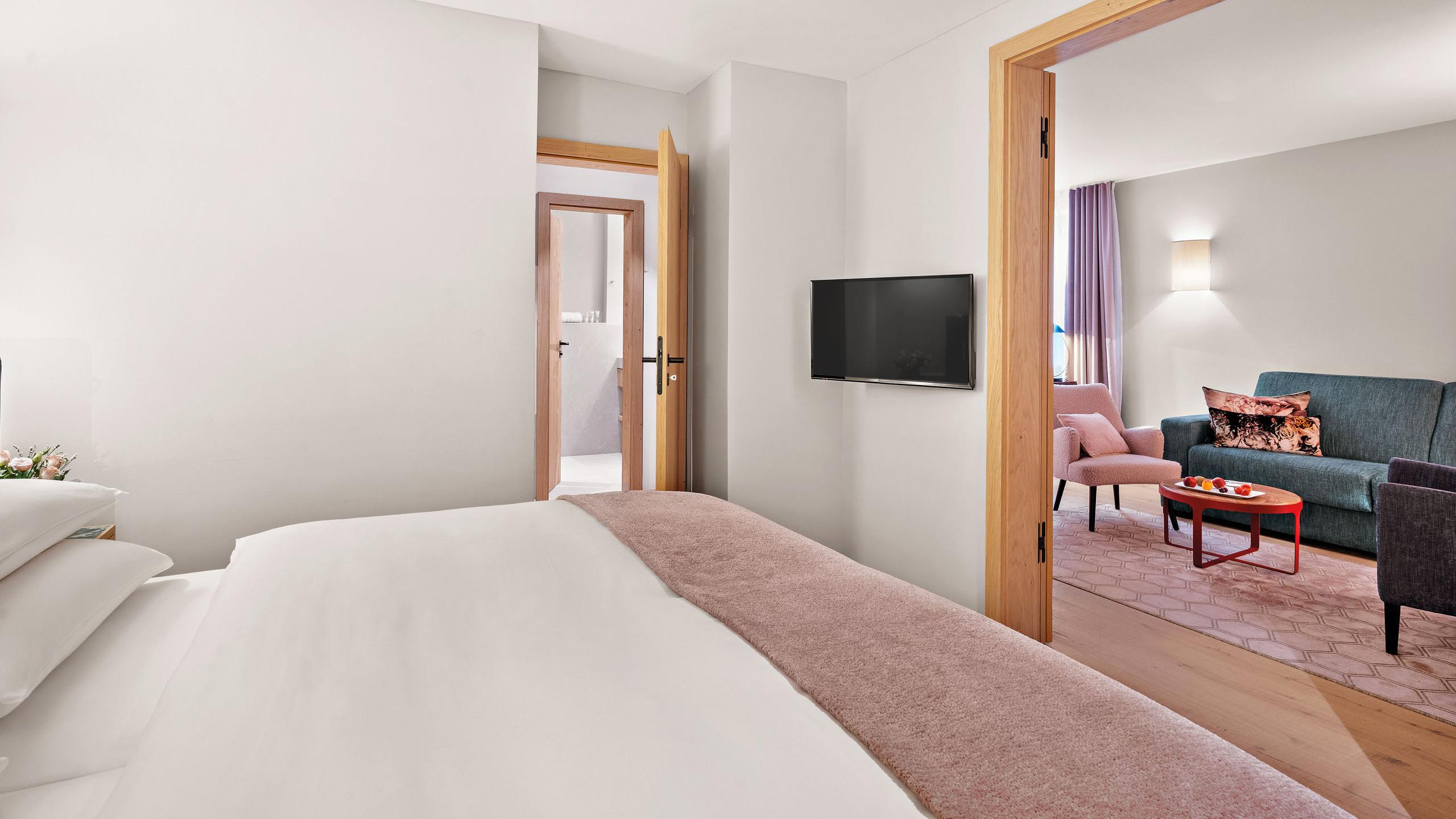 Unsere großzügigen Appartements im Landhaus Ifen wurden neu gestaltet und sind über einen kurzen Fußweg durchs Freie zu erreichen. Sie sind für bis zu 4 Personen geeignet. Schlafzimmer und Wohnbereich sind durch eine Flügeltür getrennt. Das Schlafzimmer ist ausgestattet mit einem Doppelbett (1,80 x 2,00 m) und die Schlafcouch (1,40 x 1,80 m) im Wohnzimmer lässt sich ausziehen. Die Appartements verfügen über Holzboden und Badezimmer mit Dusche. Der großzügige Balkon bietet einen seitlichen oder vollen Bergblick.